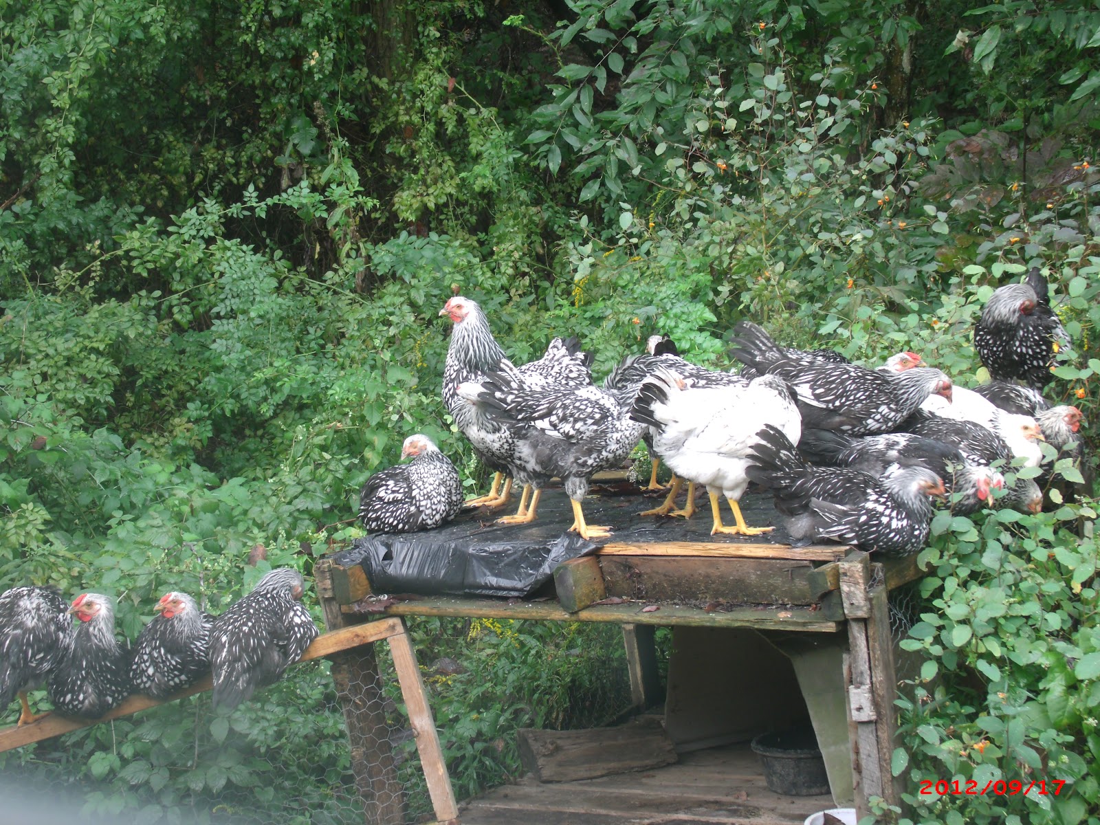 Here is a picture of my chickens making good use out of an old abandoned rabbit pen. Even my animals do not let anything go to waste around here. It was a nice place to sun themselves. Silly birds.